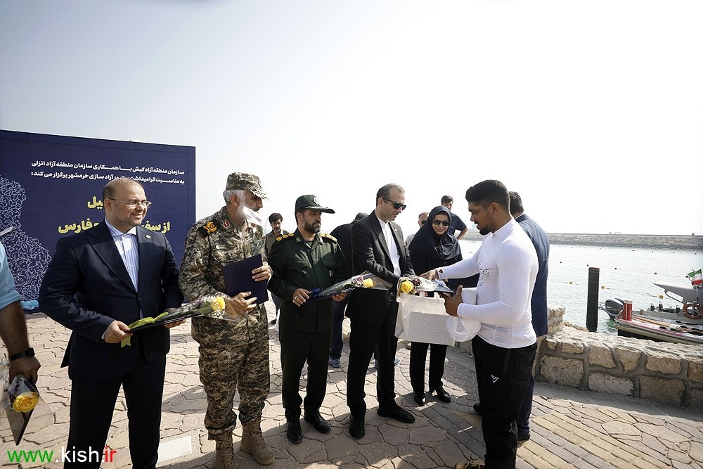 بر اساس برنامهریزی صورتگرفته توسط حوزه فرهنگی، اجتماعی و گردشگری سازمان منطقه آزاد انزلی، این حرکت نمادین از جزیره فارور آغاز و پس از طی مسیر دریایی تعیینشده، در اسکله جزیره کیش خاتمه یافت. پاروزنان در بدو ورود به اسکله کیش با استقبال گرم مدیرعامل سازمان منطقه آزاد انزلی و مسئولان محلی، ورزشکاران و جمعی از مردم روبهرو شدند و به رسم یادبود، گلهایی به آنان اهدا شد.